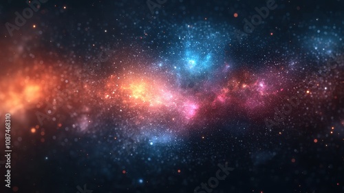 © FarhaStock, Naklejka premium Stunning Cosmic Nebula in Deep Space Displaying Vibrant Colors and Bright Stars Against a Starry Background with Glowing Gas Clouds and Distant Galaxies