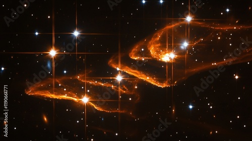 Obraz premium Stunning Cosmic Nebula, Orange and Black Space Scene with Bright Stars