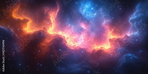 Naklejka premium Stunning cosmic nebula showcasing vibrant colors amidst distant stars in a...