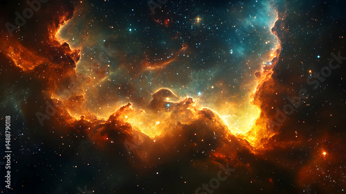 © Nhoeb, Fototapeta premium Stunning Cosmic Nebula with Bright Colors and Starry Background