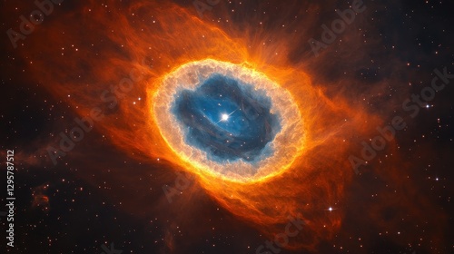 © Kan, Obraz premium Stunning Cosmic Nebula with Bright Orange and Blue Colors in Space