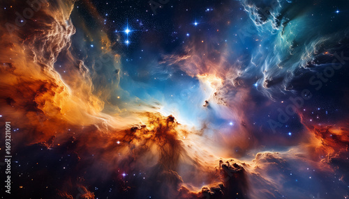 Fototapeta premium Stunning Cosmic Nebula With Vibrant Colors And Dense Gas Clouds Illuminated...