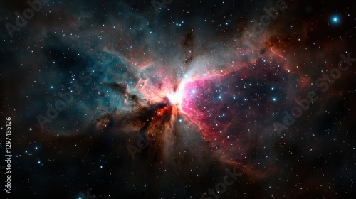 Naklejka premium Stunning cosmic nebula with vibrant colors and stars, showcasing the beauty of the universe