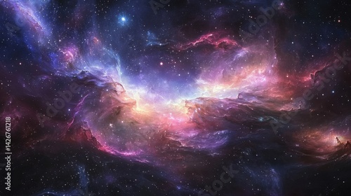 Fototapeta premium Stunning Cosmic Nebula with Vibrant Colors and Twinkling Stars
