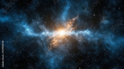 Naklejka premium Stunning cosmic scene featuring bright central explosion surrounded by swirling blue and orange