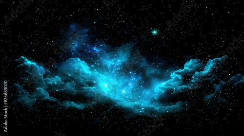 © Suphot, Fototapeta premium Stunning cosmic scene featuring vibrant blue and green clouds of gas and stars, perfect for illustrating the beauty of the universe.
