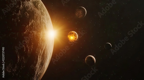 © Theeranan, Obraz premium Stunning Cosmic Scene with Planets and Sunlight Effects