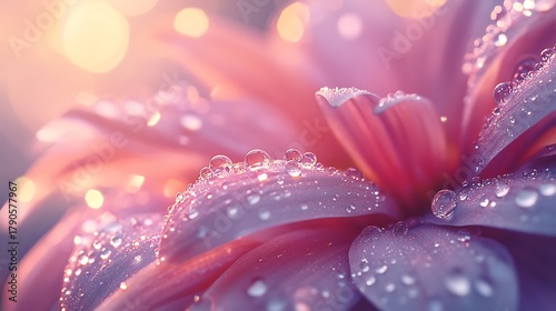 © Meera Graphic , Fototapeta premium Stunning dahlia blossom glistening with dewdrops in soft morning light background