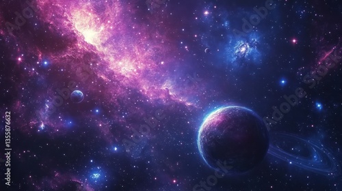 © Alfan Mask, Obraz premium Stunning Deep Space Scene Featuring a Galaxy, Planets, and a Nebula