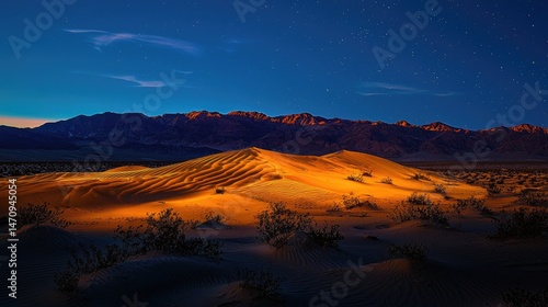 © Manto, Naklejka premium Stunning desert dune landscape bathed in twilight glow.