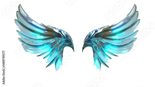 © Syahrul, Fototapeta premium Stunning Digital Art of Angelic Wings: Celestial Azure and Silver Feathery Design