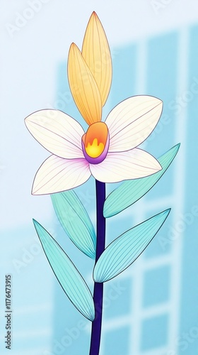 Naklejka premium Stunning Digital Illustration: Delicate Orchid Flower Blooming Against Modern...