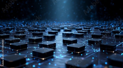 © Abdul, Obraz premium Stunning digital network grid with glowing blue data points and interconnected nodes creating a futuristic technological landscape