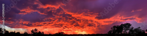 © Anastasiia, Fototapeta premium Stunning Display Of Pink, Purple And Gold Clouds Illuminated By The Setting Sun. Panoramic Banner. Generative AI