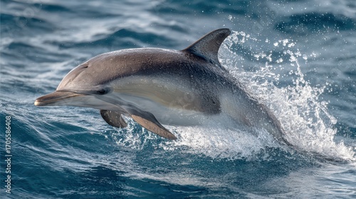 © netsay, Naklejka premium Stunning Dolphin Leaping Out of the Ocean, Majestic Swim and Jump Action Ideal for HighEnergy Campaigns and Inspiring Creativity.