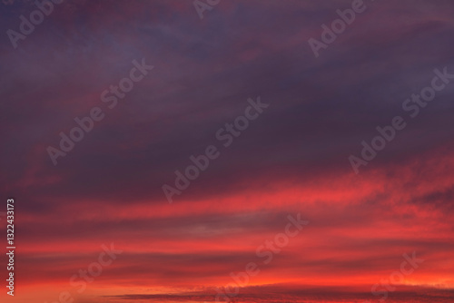 © 5ph, Obraz premium Stunning dramatic sunset sky with golden clouds and pink and purple texture