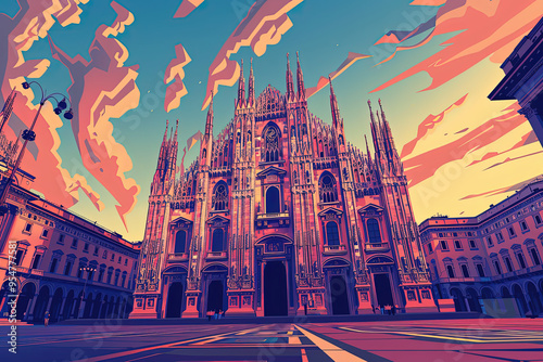 © FloxyArt, Fototapeta premium Stunning Duomo di Milano: A Geometric Perspective