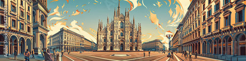 © FloxyArt, Fototapeta premium Stunning Duomo di Milano: A Geometric Perspective