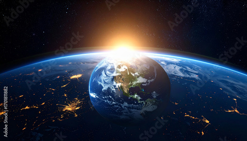 © MUHAMMADFATUR, Obraz premium Stunning Earth Rise View from Space