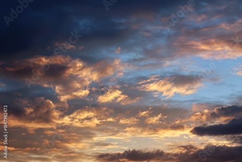 Fototapeta premium Stunning Evening Clouds: A Tranquil Sky Brushstroke at Sunset with Hues of...