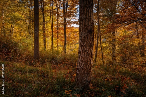 © The 2R Artificiality, Obraz premium Stunning fall afternoon in dense woodlands