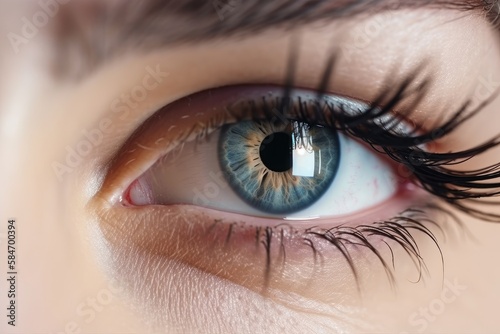 Fototapeta premium Stunning female eye in macro with natural makeup; chic and detailed. Generative AI