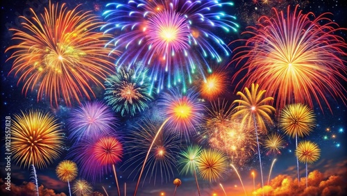 Fototapeta premium Stunning Firework Drawing: Captivating Art Illustrating Colorful Explosions in Night Sky for Celebrations and