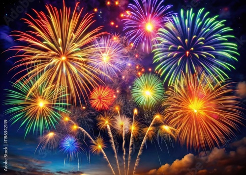Naklejka premium Stunning firework photography: illuminate your event with vibrant night sky...