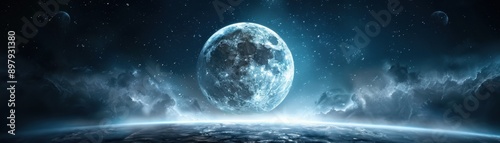 Fototapeta premium Stunning Full Moon Over Earth with Starry Sky and Clouds in Space