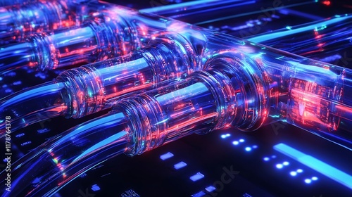 Fototapeta premium Stunning Futuristic 3D Render: Vibrantly Lit Data Cables Interconnecting. AI...