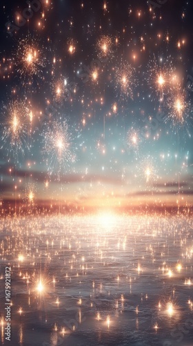 Naklejka premium Stunning galaxy and starry night sky over horizon with cosmic glow and...