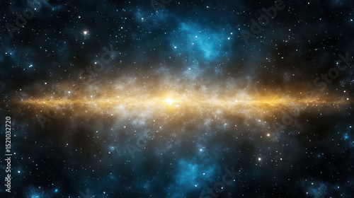 © siraphol, Naklejka premium Stunning galaxy with warm golden and cool blue hues merging beautifully in space