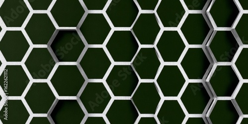 © Ilja, Fototapeta premium Stunning Geometric Green Seamless Hexagonal Patterns with Depth for Modern Design and Decoration