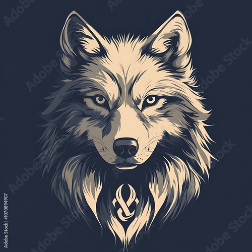 © Prosanjit12, Naklejka premium Stunning Geometric Wolf Head Design Against Dark Background Wallpaper