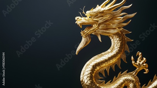 Obraz premium Stunning Golden Dragon Sculpture Captivating Details Displayed Against a Dark...