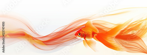 Fototapeta premium Stunning goldfish with glowing scales swimming gracefully in elegant aquarium against white background