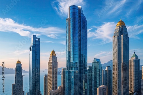 © Michael, Fototapeta premium Stunning High-Rise Architecture Under Bright Blue Skies with Breathtaking Daylight Views