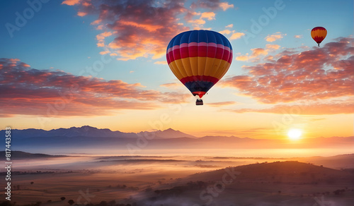 Naklejka premium Stunning Hot Air Balloons: Capturing the Beauty of Balloons in the Sky with...