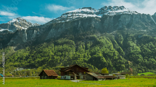 Obraz premium Stunning house mountain scenery background.