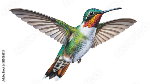 © mod, Obraz premium Stunning hummingbird isolated on transparent background, in flight with vibrant colors and striking details, a symbol of nature and beauty