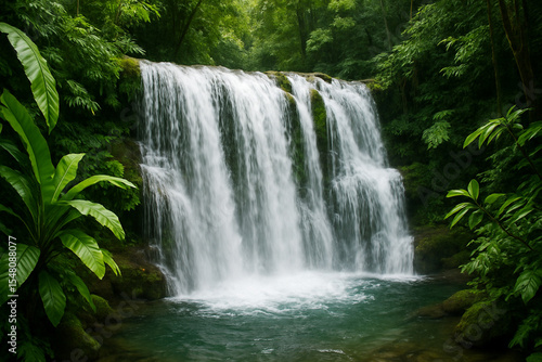 Obraz premium Stunning Hyper-Realistic Waterfall in Lush Tropical Rainforest