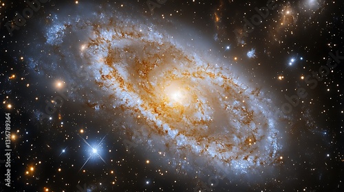 © oris, Naklejka premium Stunning image of a spiral galaxy, showcasing cosmic beauty and stellar formations.