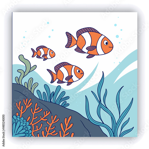 © Lam, Naklejka premium Stunning image of a tropical fish swimming amidst a vibrant coral reef, showcasing colorful marine life in a serene underwater environment.