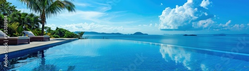 Obraz premium Stunning infinity pool overlooking a serene ocean with clear blue skies and...