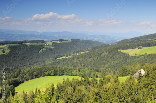 Obraz premium Stunning landscape in Austria with village, forest, mountain and cloud