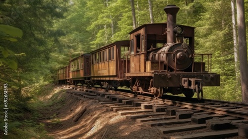 © Juho, Fototapeta premium Stunning landscape of the old brown train on a railway, Generative AI