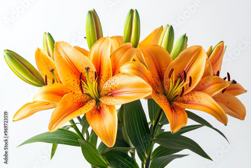 © Bojan, Obraz premium Stunning Lily Flowers Isolated on a Clean White Background