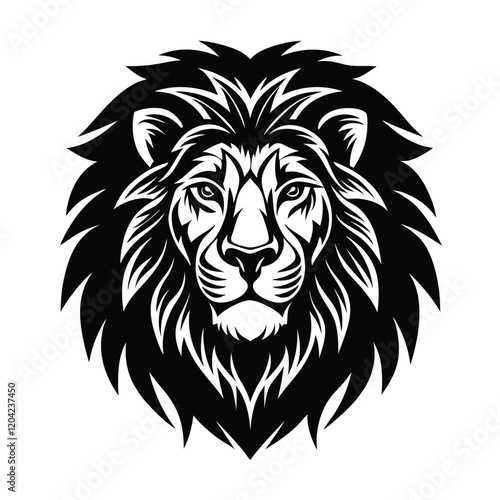 Obraz premium Stunning Lion Head Silhouette Vector Art - Black Lion Head Design Illustration