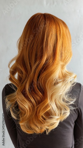 © WisChi, Obraz premium Stunning Long Wavy Copper Blonde Balayage Hair Style Back View