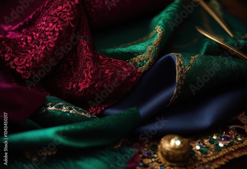 Fototapeta premium stunning macro shots showcasing vibrant fabric textures intricate details rich colors textile enthusiasts, pattern, stitching, design, art, visual